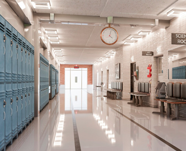 Cleanable, non-slip flooring is critical in educational and heavily trafficked cultural environments.