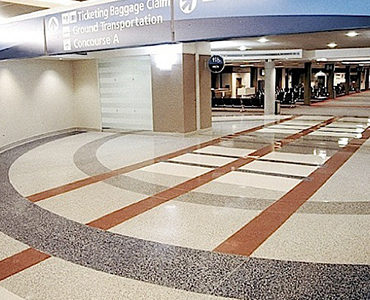 In airport passenger and commuter areas, attractive flooring that provides durability, safety, and comfort is a must. Extremely hard-wearing Terrazzo systems are ideal for airport terminals and baggage halls with constant high pedestrian traffic and aesthetic decorative requirements. Non-slip, durable, chemical- and oil-resistant seamless resin flooring systems are also proven solutions for train stations, railway platforms, interchanges, and maintenance depots.